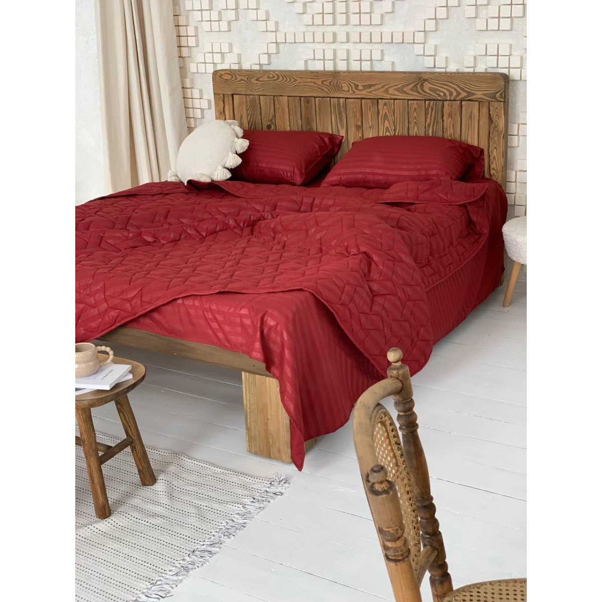 Літній однотонний набір постільної білизни (холофайбер) двоспальний, Бордо