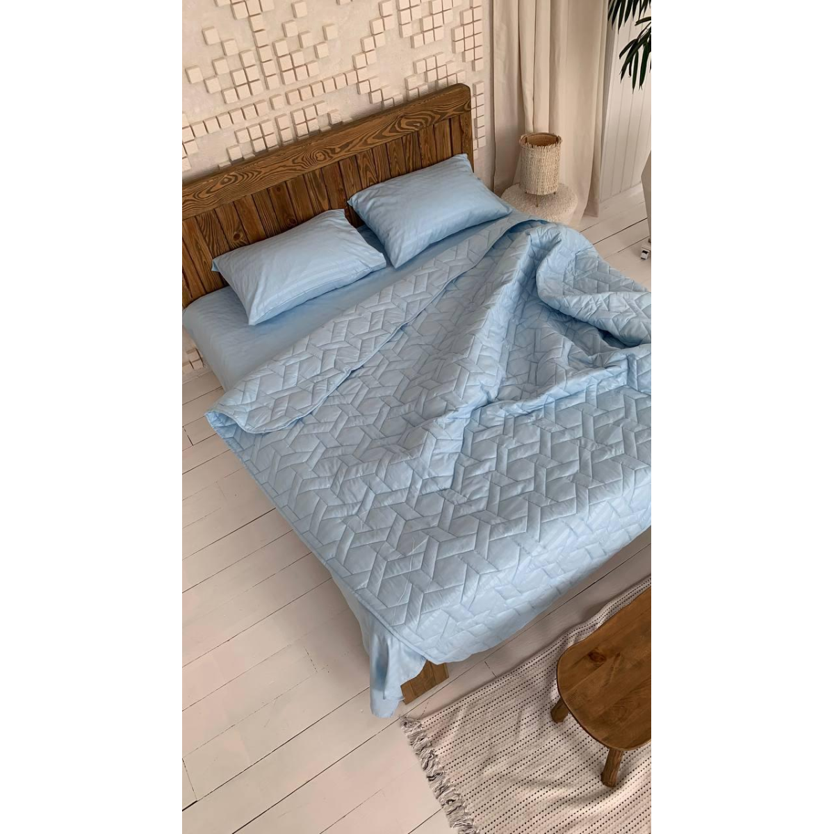 Літній однотонний набір постільної білизни (холофайбер) Сімейний, Блакитний