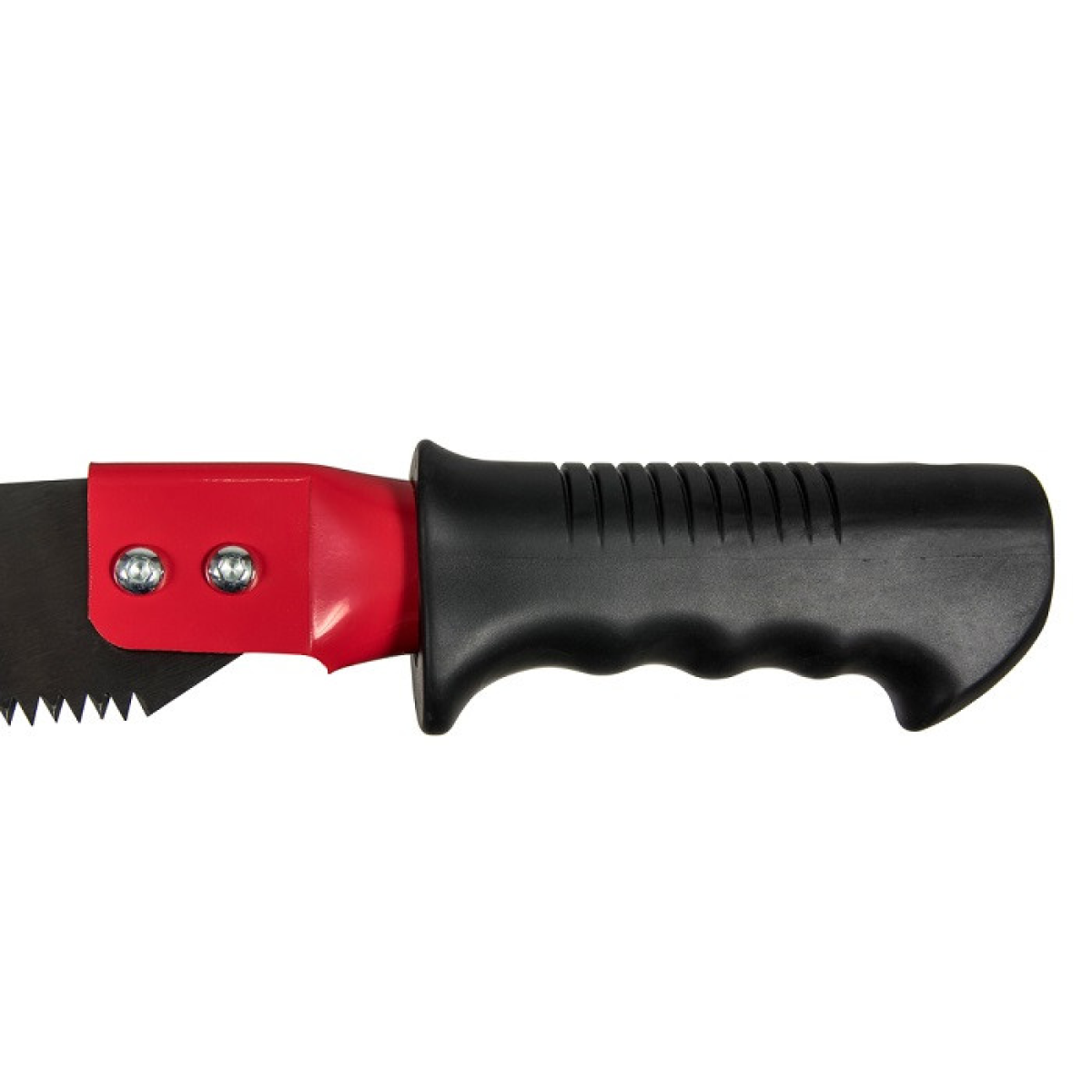 Міцність, надійність. Робочий елемент пили виготовлений із високовуглецевої сталі 65Mn, це забезпечує високу міцність та довговічність інструменту. Різальні крайки зубів не тупляться навіть за тривалої експлуатації. Витривале до зусиль на вигин полотно пили забезпечене на кінці гаком із гострою різальною крайкою. Гаком можна швидко й легко зрізати дрібні гілки.
