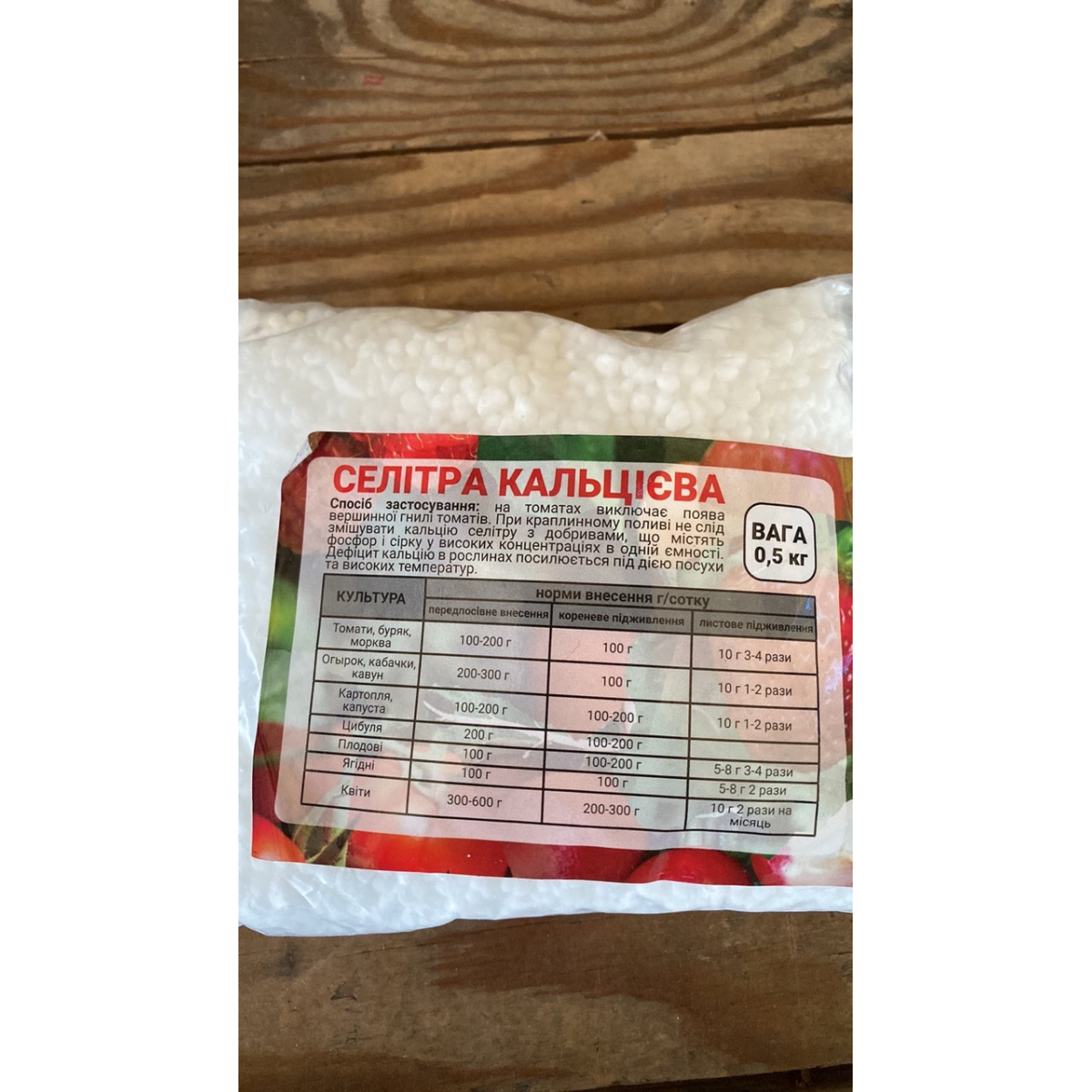 Кальцієва селітра (азотнокислий кальцій) - унікальна комбінація нітратного азоту та повністю водорозчинного кальцію є значними агрохімічними перевагами та властивостями, яких немає в інших добрив. Кореневі та листові підживлення Кальцієвою селітрою на плодових та ягідних культурах покращують співвідношення NCa, яке визначає якість при зберіганні та транспортуванні врожаю. Удобрення містить: Са(NO3)2 - 98%. Добре розчиняється у воді та легко засвоюється рослинами.