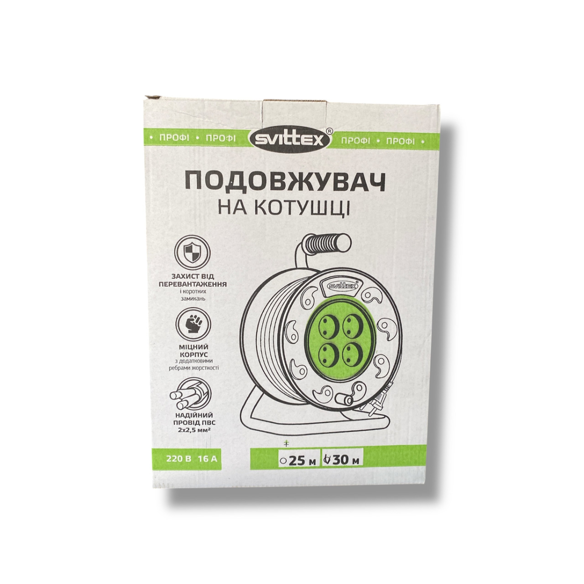 Подовжувач на котушці ПВС 2х2,5 мм2, 30м ТМ Svittex